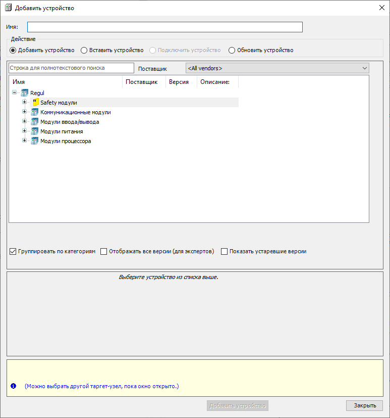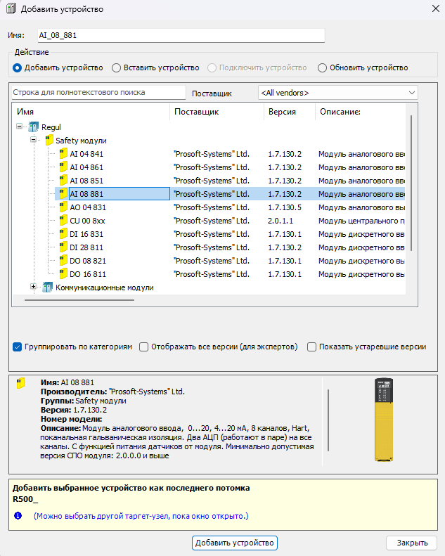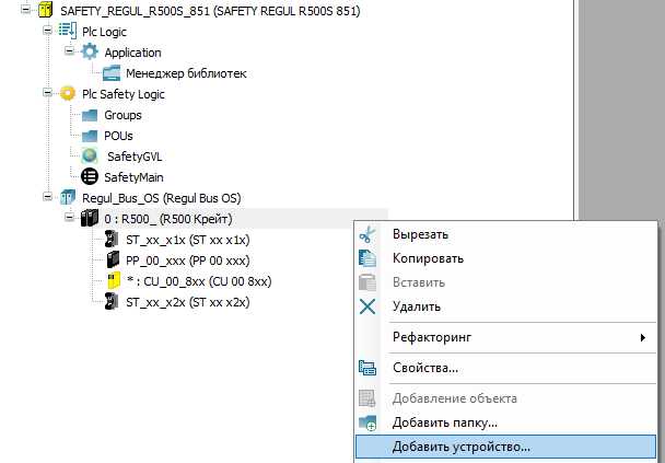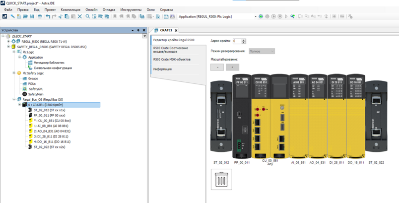 4.4.1.2.2.1. Создание конфигурации крейта ПЛК SAFETY REGUL R500S