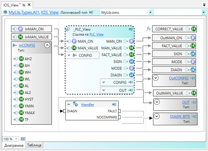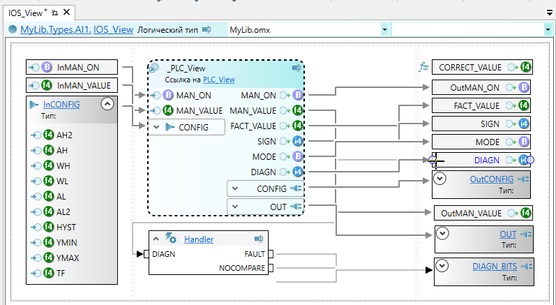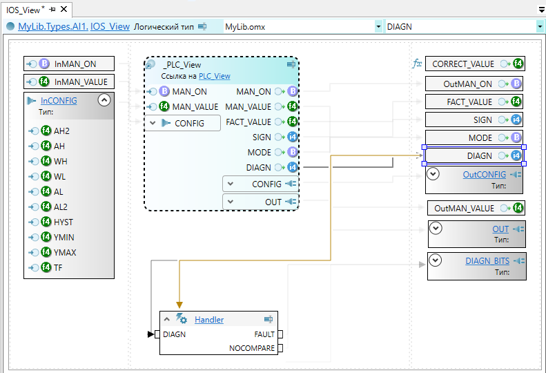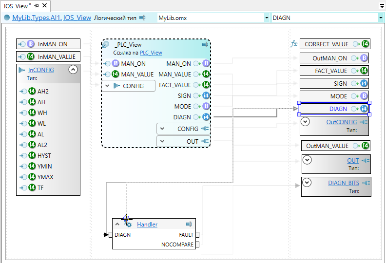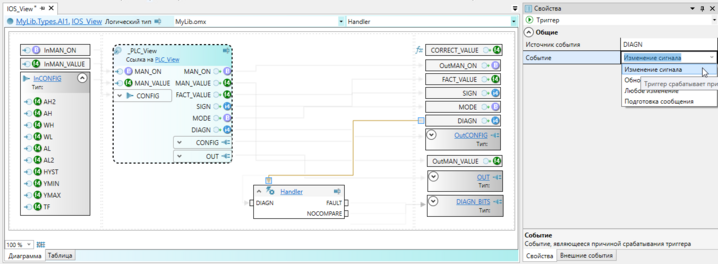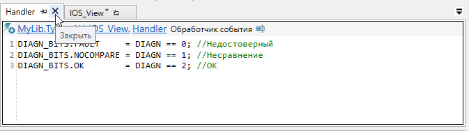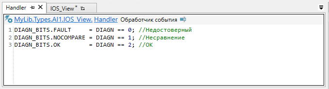 Рассмотрим пример формирования битов в зависимости от значения переменной DIAGN. Для данных целей можно воспользоваться обработчиком событий.
