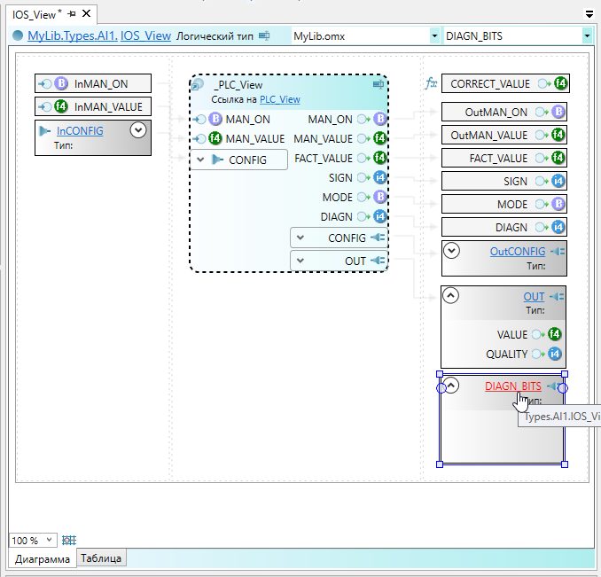 3. Перейдите в редактор сокета "DIAGN_BITS", кликнув по названию объекта.