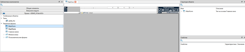 1. Откройте экранную форму главного окна в проекте.