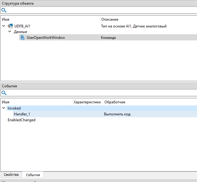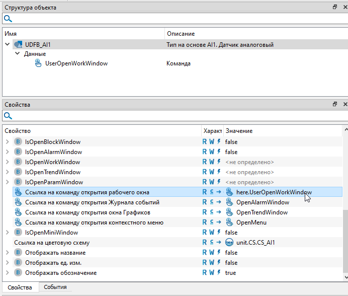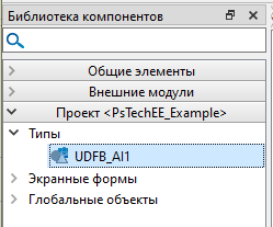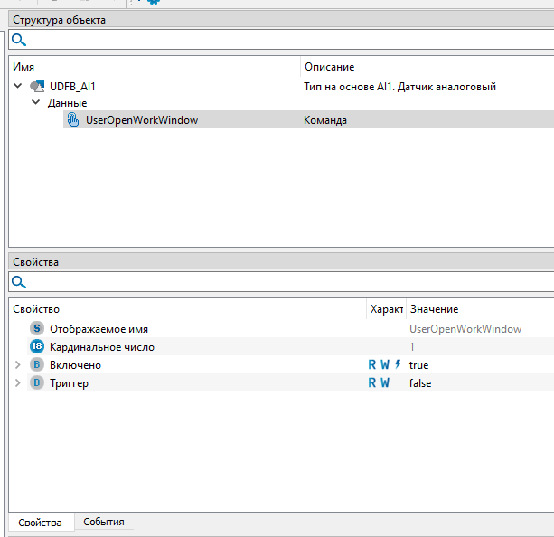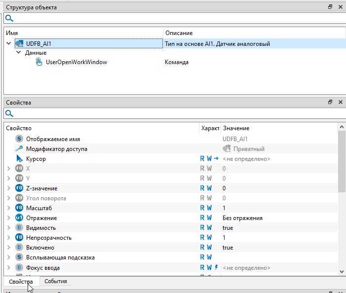 21. Выделите тип UDFB_AI1 в структуре объекта и перейдите на вкладку Свойства.