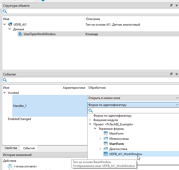 16. В структуре объектов будет добавлена команда. Задайте ей новое имя, например, UserOpenWorkWindow