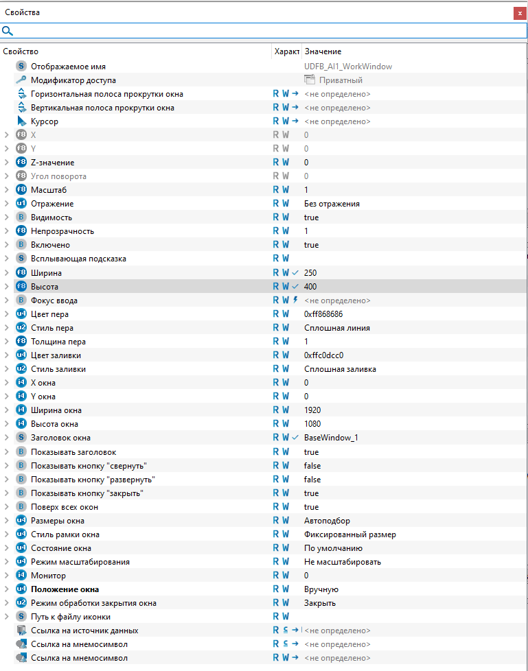 7. В свойствах формы можно изменять высоту и ширину формы, задавать цвет заливки окна и формировать заголовок.