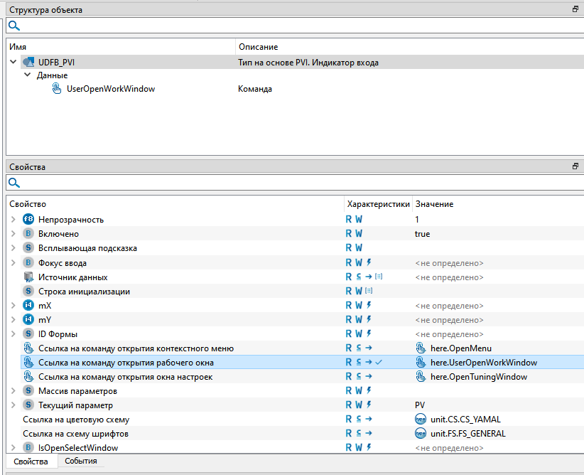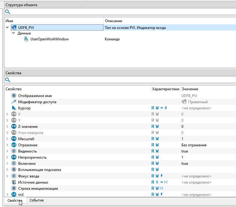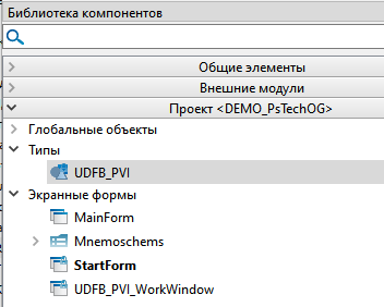 21. Выделите тип UDFB_PVI в структуре объекта и перейдите на вкладку Свойства.