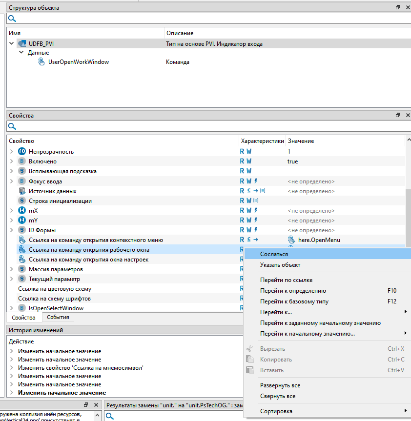 22. Кликните правой кнопкой мыши по значению свойства "Ссылка на команду открытия рабочего окна" и выберите команду "Сослаться".