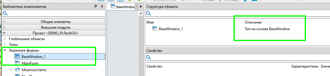 4. В области «Экранные формы» будет создана форма на основе BaseWindow.