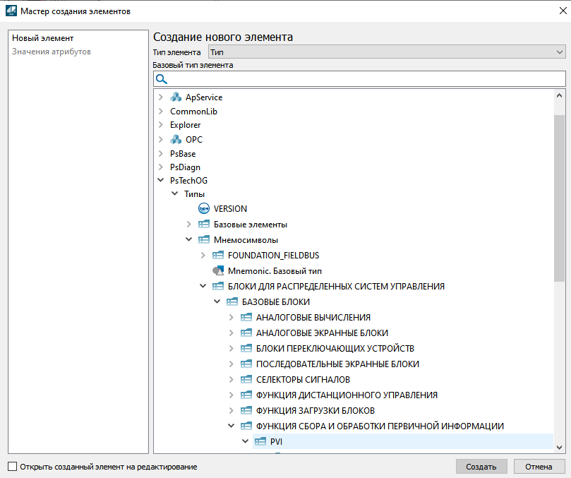 11. Выберите тип PVI. Индикатор входа и нажмите на кнопку «Создать».