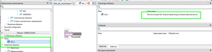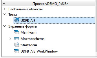 21. Выделите тип UDFB_AIS в структуре объекта и перейдите на вкладку Свойства.