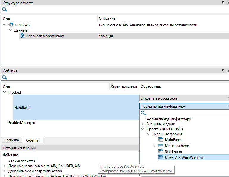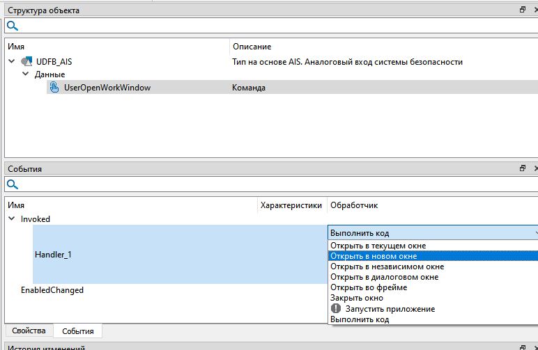 16. В структуре объектов будет добавлена команда. Задайте ей новое имя, например, UserOpenWorkWindow