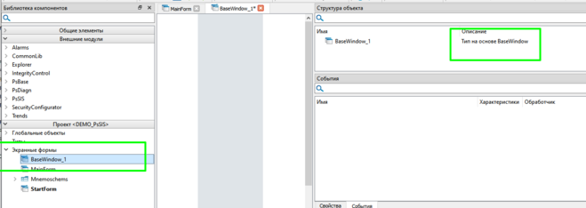 4. В области «Экранные формы» будет создана форма на основе BaseWindow.