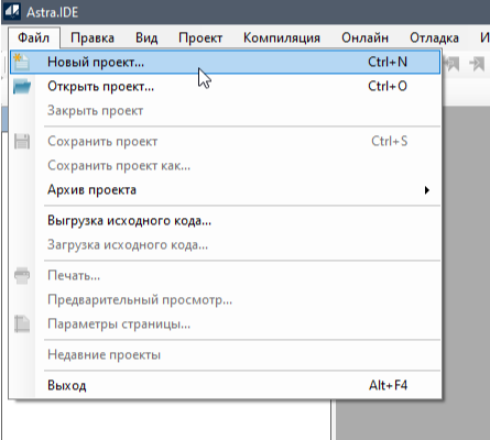 1. В главном меню выберите команду "Файл" -> "Новый проект..."