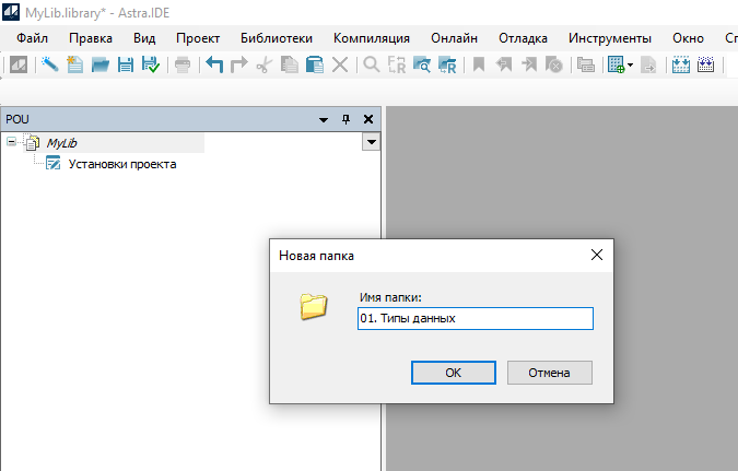 5. Добавьте папку "01. Типы данных" и нажмите кнопку "ОК".