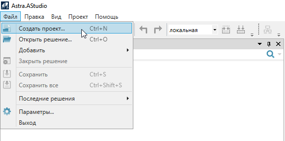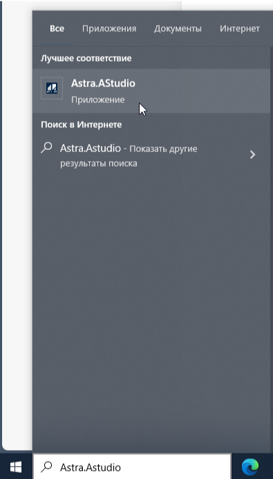 1. Запустите конфигуратор Astra.AStudio.