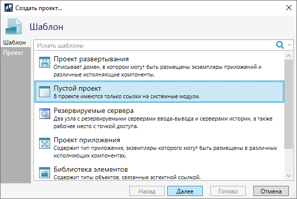 3. В открывшемся окне выберите шаблон "Пустой проект" и нажмите кнопку "Далее".