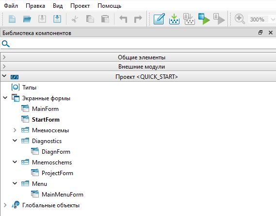 В случае успешной компиляции откроется главная форма в окне Astra.HMI.Viewer.