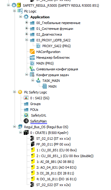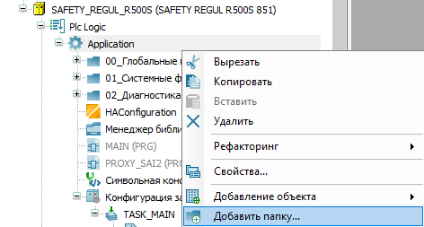 2. Создайте папку "03_PROXY_UDFB_SAI2" и переместите в нее программу "PROXY_SAI2". Также переместите группу безопасности "SAI2" в папку "Groups". Должна получиться следующая структура проекта: