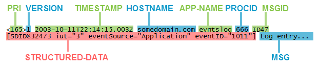 <PRI>VERSION TIMESTAMP HOSTNAME APPNAME PROCID MSGID [STRUCTURED-DATA] MSG