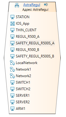 При выполнении экспорта проекта в Astra.IDE автоматически происходит создание топологии системы в домене "AstraRegul".