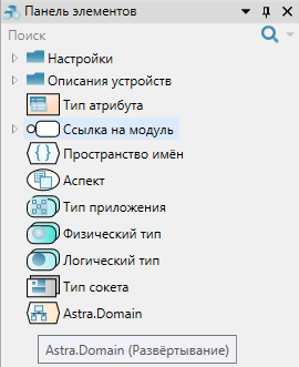 3. Перейдите в элемент "Astra.Domain" для дальнейшей настройки топологии.