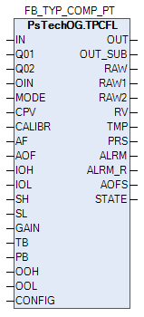В случае открытия входа (IOP) или состояния данных BAD блок TPCFL автоматически формирует сигнал тревоги IOP. При отказе входного сигнала расхода расчет останавливается и сохраняет последнее рассчитанное значение.