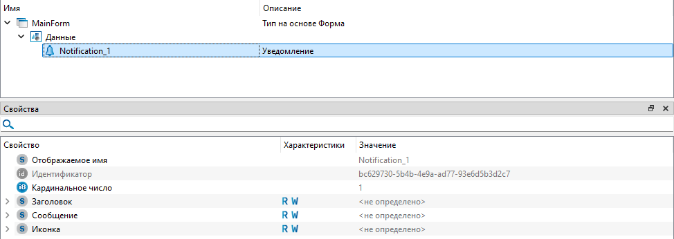 Компонент Уведомление предоставляет возможность вывода уведомлений в ОС.