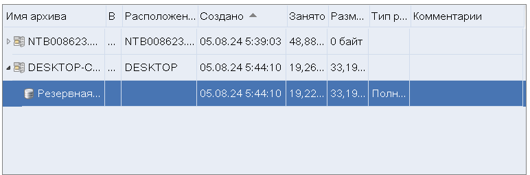 8. В открывшемся окне выберите необходимую резервную копию для компьютера.