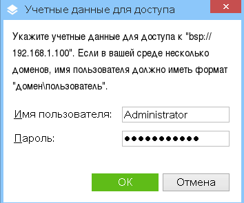 Введите учетные данные администратора и нажмите кнопку "ОК".