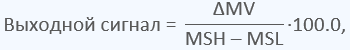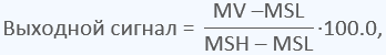 Величина выходного сигнала в физических единицах преобразуется в проценты от диапазона шкалы данного сигнала по следующей арифметической формуле: