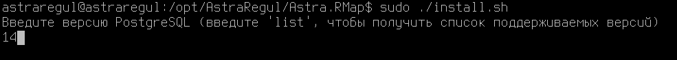 3. Укажите версию PostgreSQL, с которой планируете использовать Astra.RMap, и нажмите клавишу "Enter".