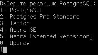 4. Укажите редакцию "PostgreSQL" и нажмите клавишу "Enter".