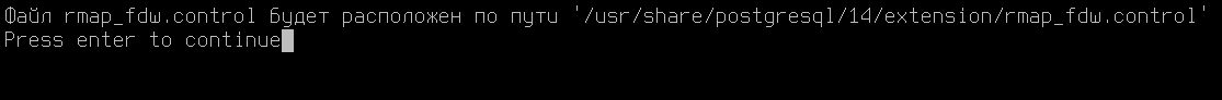 5. После выбора редакции будет определён путь установки PostgreSQL и создан файл rmap_fdw.control.
