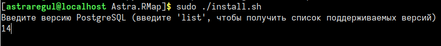 3. Укажите версию PostgreSQL, с которой планируете использовать Astra.RMap, и нажмите клавишу "Enter".
