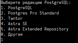 4. Укажите редакцию "PostgreSQL" и нажмите клавишу "Enter".