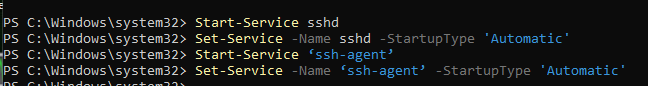 Set-Service -Name ‘ssh-agent’ -StartupType 'Automatic'