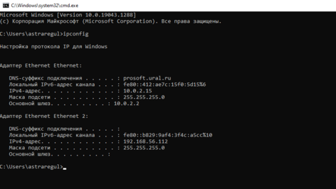 Необходимо посмотреть ip адрес сетевого адаптера (Ethernet 2).