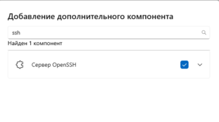 3. Введите в строке поиска "ssh". Установите флаг у компонента "Сервер OpenSSH" и установите его. Дождитесь окончания загрузки.