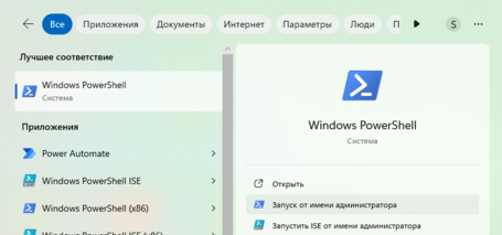 4. Откройте "Windows PowerShell" от имени администратора.