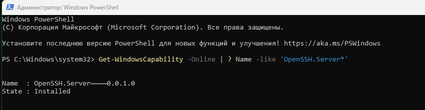 5. Проверьте, что OpenSSH сервер установлен, выполнив команду: