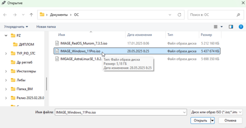 4. Нажмите кнопку "ВЫБРАТЬ" и укажите путь до файла с образом ОС в формате *.iso.