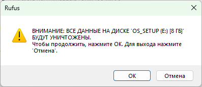 7. Откроется окно предупреждения, что все данные на диске будут удалены. Если был выбран необходимый Flash-накопитель, нажмите кнопку "ОК".