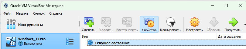 6. Выберите созданную виртуальную машину из списка в "Oracle VM VirtualBox Менеджер" и нажмите кнопку "Запустить".