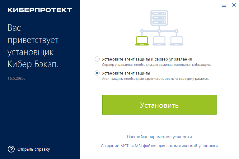 Для того, чтобы установить агент защиты Кибер Бэкап 16.5 выполните следующие действия: