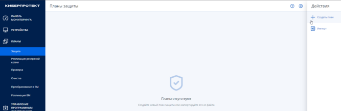 6. Перейдите на вкладку "Планы" и выберите подраздел "Защита". На боковой панели справа нажмите "Создать план".