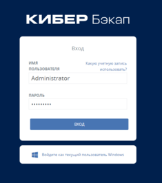 2. Авторизуйтесь под пользователем, который состоит в группе "Администраторы" на сервере.