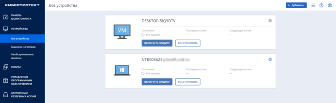 3. Откроется окно с устройствами, на которых установлен агент защиты.