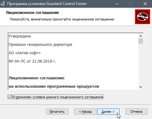 Чтобы установить Guardant Control Center, выполните следующие действия: