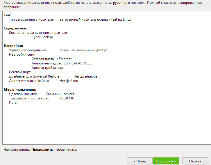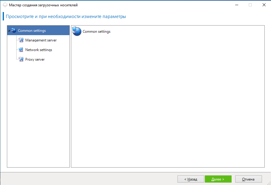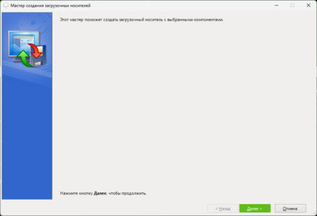 1. Запустите мастер создания загрузочных носителей на сервере управления.