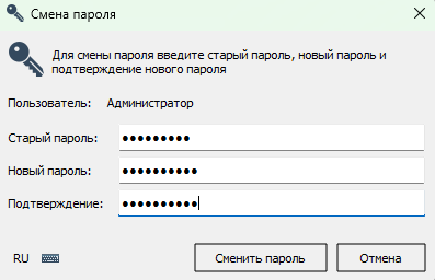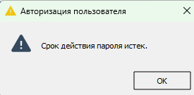 6. Авторизуйтесь под пользователем в Astra.HMI.SecurityConfigurator используя новый пароль. Если в предыдущем пункте изменили параметр "AQForcePasswordChange" на "TRUE", то откроется окно с предупреждением об устаревшем пароле. Установите новый пароль для пользователя. Если не менять параметр, то авторизация произойдет без смены пароля.