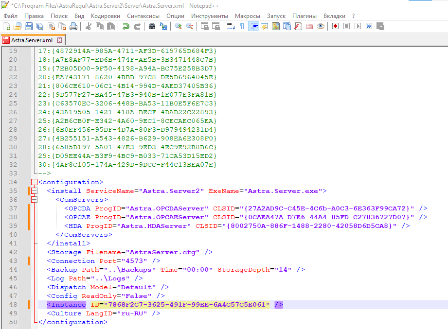 3. Откройте настроечный xml-файл копии Astra.Server2 при помощи текстового редактора, например, notepad++ по следующему пути:
