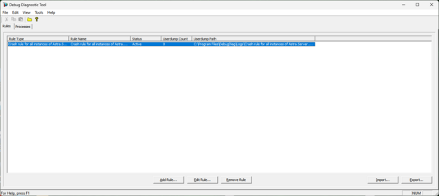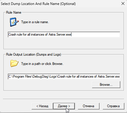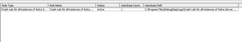 9. В окне DebugDiag отобразится созданное правило, по которому будет собираться дамп процесса.